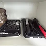 L’alloggio include servizi di self-catering, come un angolo cottura con un frigo, un forno e utensili da cucina.